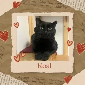 Koal is a 4-year-old DSH black male cat. He has been at our shelter for almost 4-years. He was feral and now is domesticated.